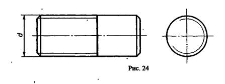 Согласно этим правилам, резьбу на стержне (наружную резьбу) независимо от её профиля изображают сплошными основными линиями по наружному диаметру и сплошными тонкими линиями по внутреннему диаметру резьбы (рис. 24).