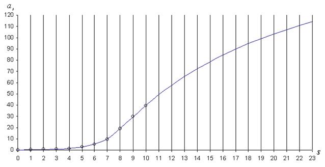 Результаты вычислений по формуле (13) при этих коэффициентах приведены в таблице 3 и на рисунке 3.
