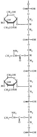 | Рис. 8. Структурная формула глицеринтейхоевой кислоты. Содержит чередующиеся остатки D-аланина и N -ацетилглюкозамина (по Rose, 1971) |