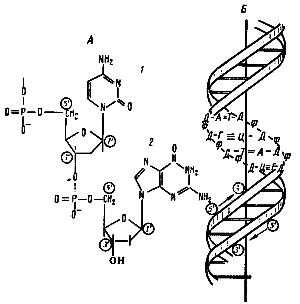 ДНК прокариот построена так же, как и эукариот (рис. 16). Молекула ДНК несет множество отрицательных зарядов, поскольку каждый фосфатный остаток содержит ионизированную гидроксильную группу. У эукариот отрицательные заряды нейтрализуются образованием комплекса ДНК с основными белками — гистонами. В клетках подавляющего большинства прокариот не обнаружено гистонов, поэтому нейтрализация зарядов осуществляется взаимодействием ДНК с полиаминами (спермином и спермидином), а также с ионами Mg2+ . В последнее время у некоторых архебактерий и цианобактерий обнаружены гистоны и гистоноподобные белки, связанные с ДНК. Содержание пар оснований А+Т и Г+Ц в молекуле ДНК является постоянным для данного вида организма и служит важным диагностическим признаком. У прокариот молярная доля ГЦ в ДНК колеблется в очень широких пределах: от 23 до 75%.