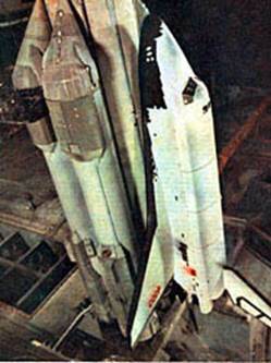Первая ступень ракеты-носителя “Энергия” состоит из четырех боковых блоков А, каждый из которых является доработанным вариантом первой ступени ракеты-носителя “Зенит” (см. ниже) На рисунке слева хорошо видны блоки А первой ступени.