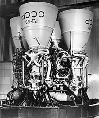 Создание двигателя РД-170, являющегося самым мощным из существующих ЖРД, было одним из наиболее сложных в создании ракеты. Стендовые огненные испытания двигателя начались только в 1984 г., т. е. почти через 8 лет после создания эскизного проекта (это, пожалуй, уникальный случай в истории создания ракетно-космических систем, характеризующий сложность решавшейся задачи).