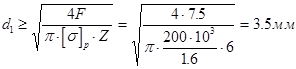 Коэффициент запаса для болтов из углеродистой стали при статической нагрузке ![]()