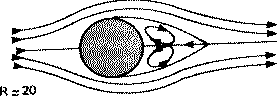 Рис.1. Обтекание цилиндра жидкостью при различных скоростях.