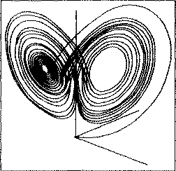 В случае хаотического движения фазовые траектории с близкими начальными параметрами быстро расходятся, а потом хаотически перемешиваются, так как они могут удаляться только до какого-то предела из-за ограниченности области изменений координат и импульсов. Поэтому фазовые траектории создают складки внутри фазового пространства и оказываются достаточно близко друг к другу. Так возникает область фазового пространства, заполненная хаотическими траекториями, называемая странным аттрактором. На рис 179 изображен такой аттрактор, полученный Э Лоренцом на ЭВМ. Видно, что система (изображаемая точкой) совершает быстрые нерегулярные колебания в одной области фазового пространства, а затем случайно перескакивает в другую область, через некоторое время - обратно. Так динамический хаос обращается с фазовым пространством При этом образование складок возможно только при размерностях больших трех (только в 3-ем измерении начинают складываться плоские траектории) От этих хаотичностей нельзя избавиться. Они внутренне присущи системам со странными аттракторами. Хаотические движения в фазовом пространстве порождают случайность, которая связана с появлением сложных траекторий в результате растяжения и складывания в фазовом пространстве.