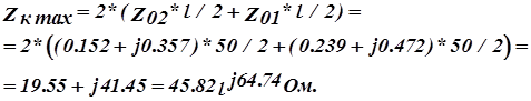 За расчетное значение Z к max принимается наибольшее из полученных Z к max =45.82 Ом.