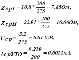 Полученные при расчетах значения первичных сопротивлений Z с.з. напряжения U с.з. и тока I с.з. срабатывания защит нужно привести ко вторичным сторонам измерительных трансформаторов, т.е. определить для соответствующих величин уставки реле электронных защит.