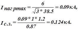 где Iк.макс - максимальный ток к.з., протекающий через защищаемый фидер подстанции при к.з. на шинах поста секционирования, кА: