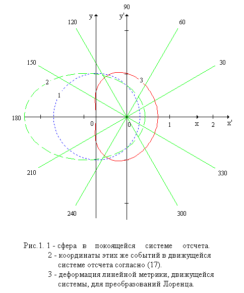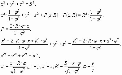 . Подстановка координат сферы покоящейся системы отсчета для этих параметров в (1) так же приводит к графику-2 рис.1, показывая тем самым полную эквивалентность (1) и (17), что доказывает справедливость (17).