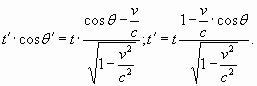 Поделив, первое равенство (14) на второе, установим связь между углами в движущейся и покоящейся системах отсчета:
