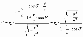 на (16), получим выражение для преобразований Лоренца в полярной системе координат: