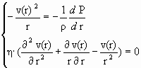 в цилиндрических координатах с учетом радиальной симметрии vr=vz=0, vj =v (r), P=P(r) уравнение запишется в виде системы