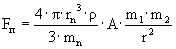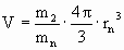 Делаем предположение № 6 – Эфир пронизывает все пространство, включая физические тела. Объем V в формуле (8) - это эффективный объем - объем элементарных частиц, из которых состоит тело 2. Все тела состоят из электронов, протонов и нейтронов. Радиус электрона много меньше радиуса протона и нейтрона, радиус последних примерно одинаков и составляет порядка rn~ 1.2∙10-15 м. Массы протона и нейтрона также примерно одинаковы mn~1.67∙10-27 кг (rn, mn – радиус и масса нуклона). Поэтому объем в формуле (8) равен:
