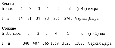 Эти значения определены на основании уравнения вихревой гравитации, в соответствии с которой силы тяготения в центральной части космического сфероида возрастают обратно пропорционально расстоянию от центра небесной системы до точки расчета - 1/r.2