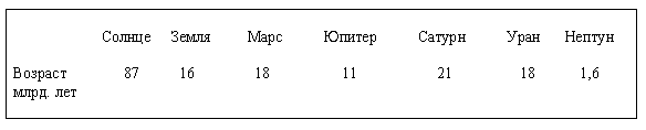 При расчете возраста планет с использованием численных значений плотностей планет, соответствующих классическим данным, все небесные тела, включая Солнце, имеют одинаковый возраст – 3,75 млрд. лет.