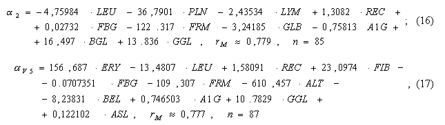 ) отведениях с параметрами крови. Эти модели имеют вид: