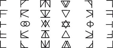 Рис. 6. Принцип раскладки ЕСЭЗР- клавиатуры по пяти строкам.