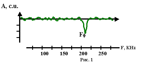 Для проверки высказанного предположения были сконструированы спектрофононометры и методики их применения (24, 25). Затем определены ультразвуковые спектры мембран различных живых клеток. Предварительно пришлось разработать способ измерения поверхностного давления различных биологических мембран (17.1, 18.1). Эти величины были необходимы для количественной оценки ожидаемых явлений, как и результаты по оценки латеральной сжимаемости биомембран при поверхностных давлениях, равных давлениям реальных мембран, которые были легко получены на основании липидного состава различных клеток и литературных данных по сжатию липидных монослоёв различного состава на границе раздела полярной и неполярной фаз. На рис. 1 приведён типичный образец ультразвукового спектра живых клеток (спектр поглощения ультразвука в относительных единицах с.u. для водной суспензии микроорганизмов Bac. subtilis).
