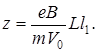 Величина центрального угла a = s/r » l1 /r, где s – кривая, по которой движется электрон в поле В. Подставляя сюда значение r, получаем: