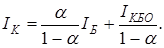 С учетом понятия обратного тока коллектора ток IК для активного режима работы следует представить как сумму двух составляющих: тока IКБО и части эмиттерного тока, который определяется потоком носителей, инжектированных в базу и дошедших до коллекторного перехода.