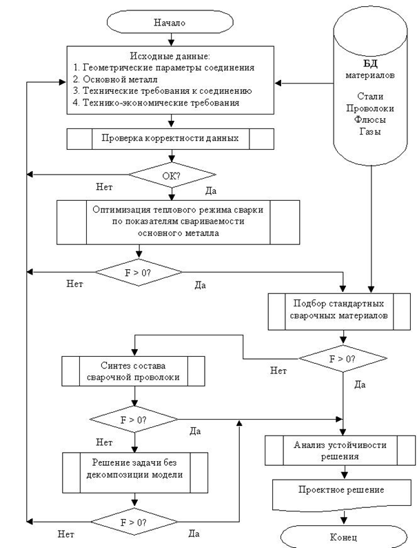 Рис. 3. Алгоритм решения задачи синтеза параметров технологии дуговой сварки НЛС в среде защитных газов