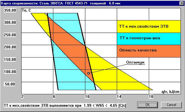 Оптимизация теплового режима сварки производится для обеспечения требуемого комплекса свойств ЗТВ. На этом этапе расчета определяются параметры режима сварки и подготовки кромок соединения, обеспечивающие получение сварного шва заданных размеров, а также температура подогрева для достижения требуемого структурного состояния ЗТВ и стойкости к образованию ХТ (рис. 4).
