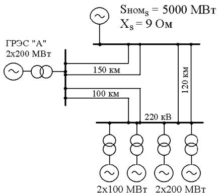 P = 150 (Мвт) - переток мощности по линии электро передач в нормальном режиме.