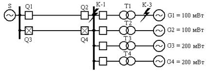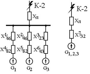 Для расчета Iкз,min возьмем точку короткого замыкания К-2 при отключенной линии подпитки и одного генераторного блока.