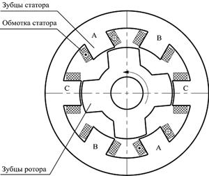 Рис.1 Конструкция индукторной машины конфигурации 6/4.