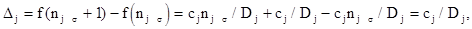 означает возможное приращение целевой (1) за счет того, что на выполнение работы множества