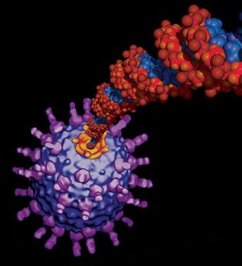 В центре ротора находится молекула ДНК. По мере того, как ротор вращается, молекула перемещается из капсида вируса во внешнее пространство.