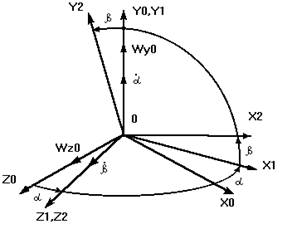 Кинематические уравнения двухосного гиростаби-лизатора, для расположения координатных осей приве-денного на рис.1, имеют вид:
