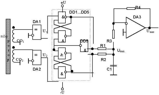 1) Электронная часть ДУ для случая цифрового выходного сигнала представлена на рис.3.