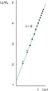 | n(М) | 1 (≈15) | 2 (135) | 3 (494) | 4 (938) | 5 (1865) | 6 (2980) | 7 (5278) | 8 (7500) | 9 (9460) |