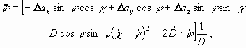 С точки 150 которая связана с ведомым ЛА. Начало СК целесообразно совместить с центром масс ведомого ЛА. Причем эта система может быть ориентирована по отношению к связанным осям ЛА различным образом. Во многом это обусловлено тем, что на ведомом ЛА находится измерительная аппаратура, определяющая параметры относительного движения ведомого и ведущего ЛА. Поэтому логично выбрать те варианты ориентации осей и те типы относительных СК, которые используются в качестве базовой системы отсчета при измерении координат относительного движения.