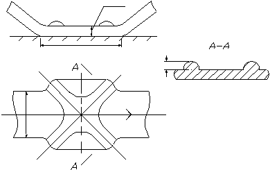 При сварке плоских выводов на контактные площадки кристаллов БИС прочность соединения зависит от характера деформации. Наиболее высокой прочностью обладает сварное соединение с ребрами жесткости. Такой вид наиболее оптимален при ограниченной ширине вывода. Вид сварной точки с оптимальным соотношением размеров, выполненной ультразвуковой сваркой, показан на рис.11.