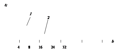 , отсюда видно что применение нового метода с использованием в качестве синхронизирующих кодовых групп с одной КТ значительно уменьшает время поиска СС в пределах одного цикла передачи вместо пяти для обычного метода. На рисунке показан график зависимости времени поиска синхросигнала от длины синхроимпульсов для случаев применении b