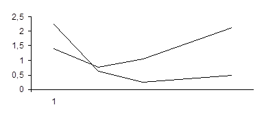 - среднее время поиска СС в зоне случайного и синхросигнала, соответственно. При использовании в качестве синхронизирующих кодовых групп с одной критической точкой (КТ) [2] время поиска СС составляет