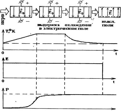 Рис 3 Схема получения термоэлектрета с истинной поляризацией