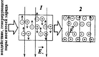 Рис. 5. Электрет с объемно-зарядовой поляризацией- I - получение; 2 - готовый электрет