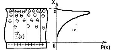 Если электрет имеет пространственный (объемный) заряд, плотность р(х) которого зависит только от одной координаты х (см. рис. 8), то электрическое поле внутри не будет однородным, так как напряженность будет зависеть от х. В этом случае выражение для ЭРП имеет вид: