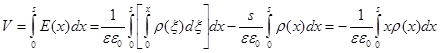 Так как внутри электрета имеется электрическое поле, то между его противоположными сторонами имеется разность потенциалов. Ее легко найти, используя связь напряженности и разности потенциалов.