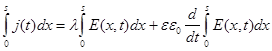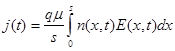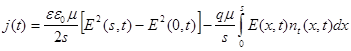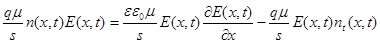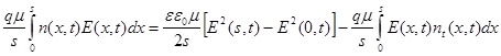где q[п(х, t)+п t(х, t)]=ρ(х, t) - плотность заряда в пленке. Умножим обе части на Е(х, t) и μ, поделим на s и придем к выражению;