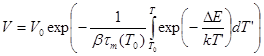 где V0 T0 - начальные значения поверхностного потенциала и температуры, V, Т - конечные значения этих физических величин, τm(T0) - время максвелловской релаксации при начальной температуре.