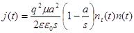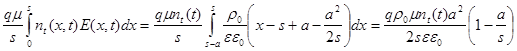 где принято во внимание, что при х< s-а n t(х, t)=0 и подынтегральное выражение равно нулю, а при s- a≤ x≤ s концентрация захваченного на ловушки заряда п t(х, t)≡п t( t) не зависит от координаты.