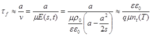 Причем во втором случае, преодолевая большую толщину диэлектрика, он наверняка захватится ловушкой, не достигнув электрода. Поэтому время «пролета» целесообразно оценивать для носителей, движущихся к ближайшему электроду х=s. Расстояние Δх, которое необходимо преодолеть такому носителю, равно s-x0.