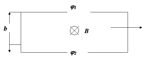 При включении магнитного поля каждый носитель оказывается под действием магнитной силы F , направленной вдоль стороны b пластинки и равной по модулю