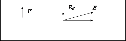 В результате у электронов появляется составляющая скорости, направленная к верхней (на рисунке) грани пластинки. У этой грани образуется избыток отрицательных, соответственно у нижней грани — избыток положительных зарядов. Следовательно, возникает дополнительное поперечное электрическое поле ЕB . Тогда напряженность этого поля достигает такого значения, что его действие на заряды будет уравновешивать силу (2.2), установится стационарное распределение зарядов в поперечном направлении. Соответствующее значение EB определяется условием: eEB =euB . Отсюда: