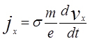 В проводнике, движущемся с ускорением dvx /dt , возникает ток jx и поле Ex