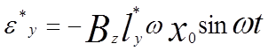 В самом деле, для данной геометрии опыта (см рисунок) в магнитном поле B (0; 0; Bz ) при изменении координаты x со временем по закону x = x 0 cos wt, где w — частота задающего генератора, нагруженного на пьезоэлемент, и x 0 — амплитуда колебаний последнего, имеем из соотношения (3)